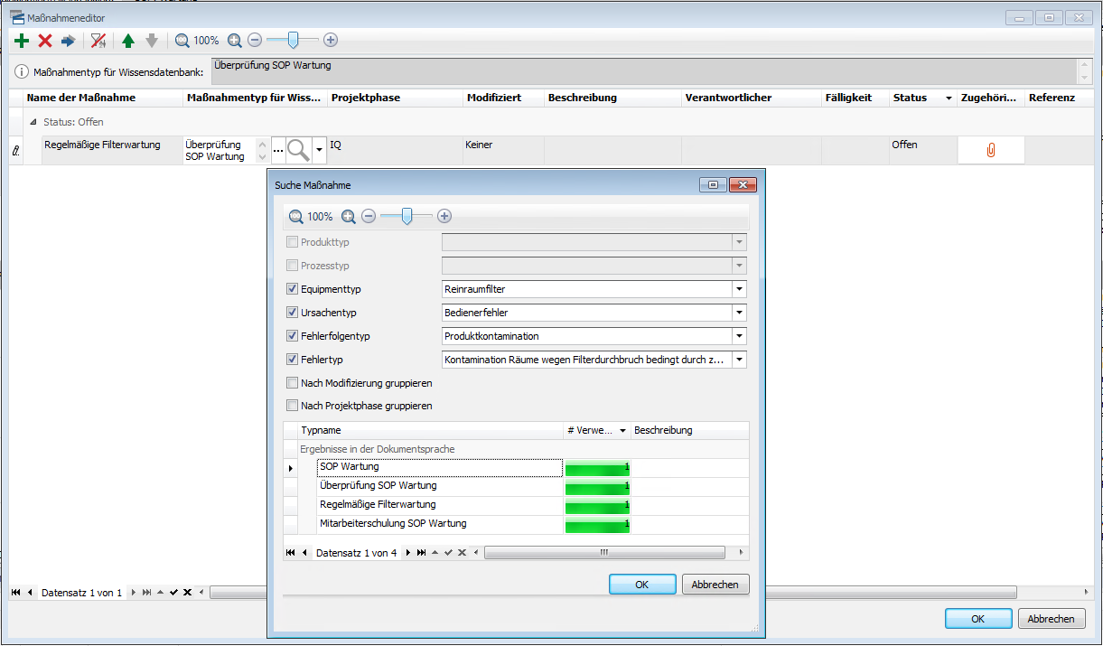 - eine Bewertung der Maßnahmen mit Hilfe eines konfigurierbaren Maßnahmenbewertungskatalogs